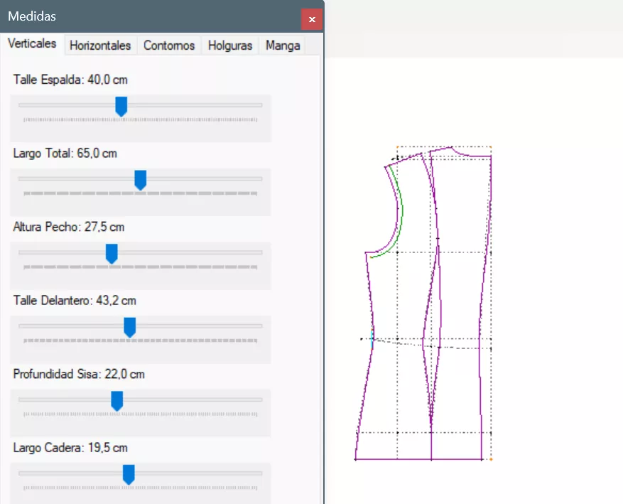 -Eleccion de un software en: Chaqueta, Abrigo, Chaleco, Pantalón, Falda, otros.